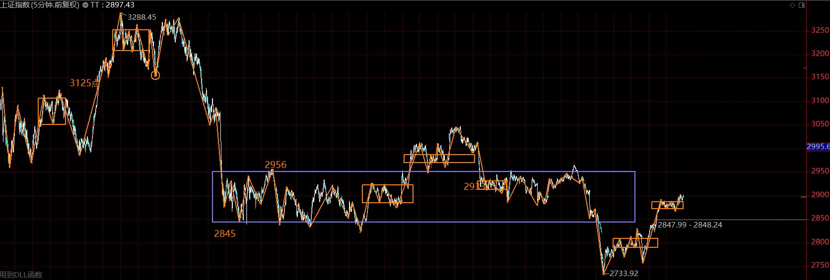 結(jié)合周五盤后的消息,這里五分鐘的上漲趨勢應(yīng)該已經(jīng)結(jié)束,市場強(qiáng)于預(yù)期,并沒有在中樞下方結(jié)束這段上漲趨勢,而且在中樞的中部,回落后,如果不創(chuàng)新低,則構(gòu)成大級別的二買,中期大行情可期。短期這里可能會面臨一波回落,周一早盤如果開在2845上方,則可持股不動,如果低于2845點(diǎn),則可在上拉時適度減倉,后續(xù)在2733與2800之間擇機(jī)回補(bǔ)。