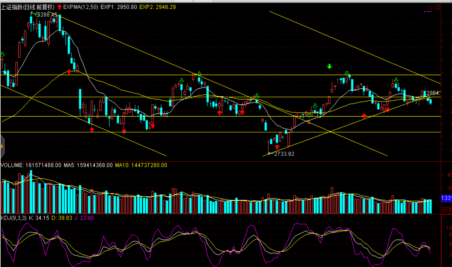 技術(shù)面:短期弱勢震蕩、滬綜指圍繞2950點(diǎn)一線上下波動。