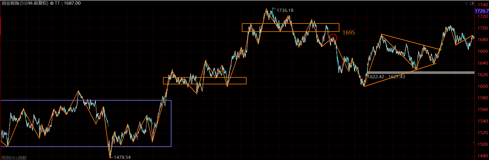 創(chuàng)業(yè)板形態(tài)上是一個三角形收斂突破的回踩,基本認定這里短線整固結(jié)束,本周大概率會沖擊前高1736點,盡量持股待漲。點位來看,短線1670點附近較為關鍵。