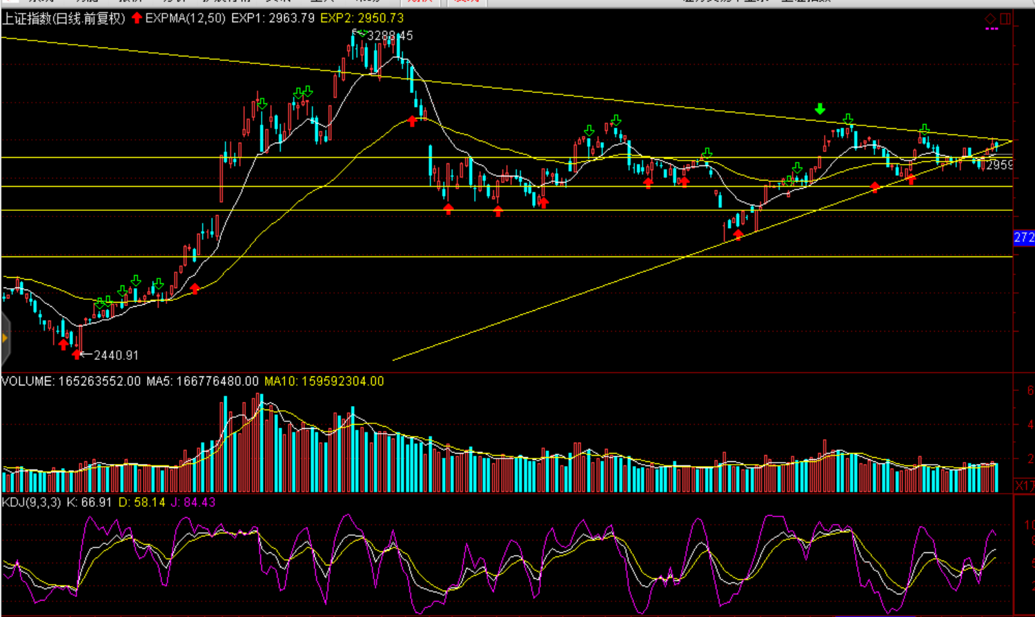 技術(shù)面:自9月16日以來滬綜指形成的收斂三角形面臨方向選擇,今日是第34個(gè)交易變盤窗口,一旦向上,則形成趨勢(shì)性反彈概率較大。