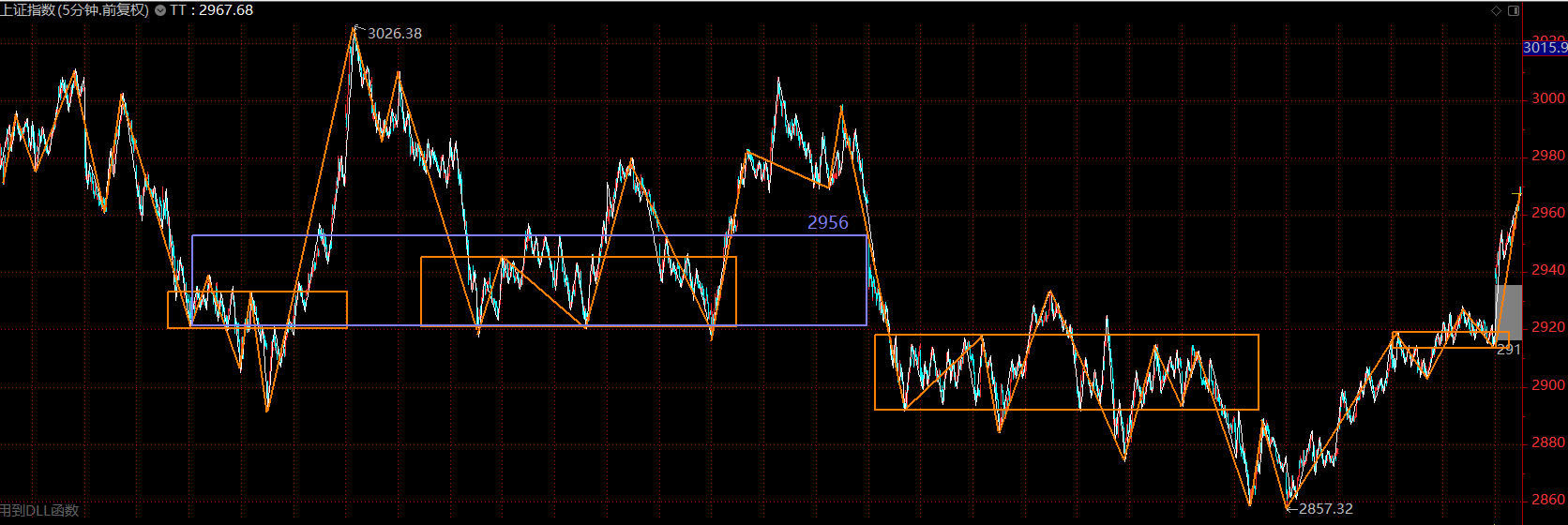 上周市場(chǎng)用前四天的時(shí)間,完成了這一輪五分鐘上漲趨勢(shì)的第一個(gè)中樞構(gòu)建,是一個(gè)奔走型的中樞,隨后在周五開始了主升階段。值得欣喜的是,市場(chǎng)終于在2956這個(gè)大關(guān)口放量了,并且一舉突破,預(yù)計(jì)在2956到3000點(diǎn)這40點(diǎn)的空間內(nèi),市場(chǎng)將會(huì)完成五分鐘上漲第二個(gè)中樞的構(gòu)建,并且橫盤將其擴(kuò)展為30分鐘級(jí)別,時(shí)間周期大約是極點(diǎn)出現(xiàn)后的10到15個(gè)交易日。這將是投資者積極調(diào)倉換股,耐心布局年報(bào)行情的最佳時(shí)期。
