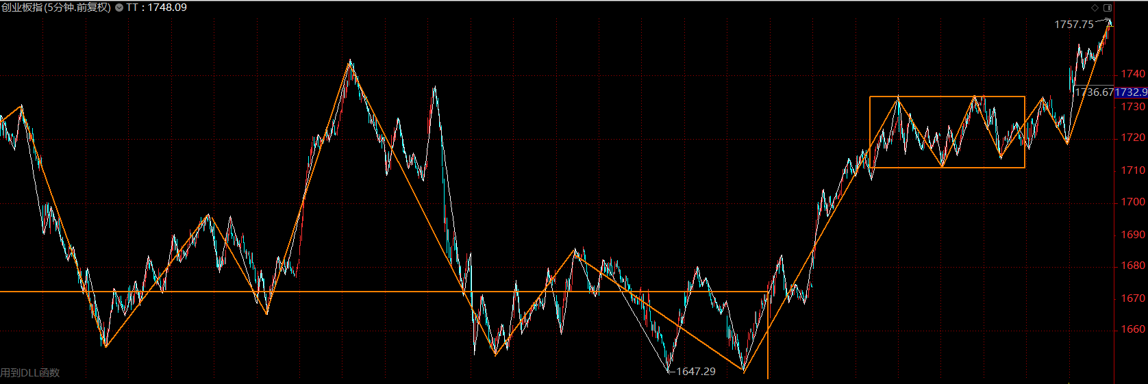 創(chuàng)業(yè)板本周創(chuàng)下八個(gè)月新高,完成了歐奈爾杯柄的一次突破,下一步要面臨1792點(diǎn)的前高大壓力位。日K線看,這個(gè)位置需要橫盤整固一段時(shí)間,同時(shí)也利于構(gòu)建下方中樞的第三類買點(diǎn)。小級(jí)別看,同樣是運(yùn)行良好的多頭趨勢(shì),目前在背馳段里,本周初的回踩只要不跌破1735點(diǎn),均可以安心持股待漲。