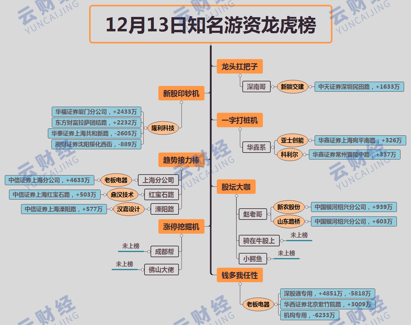 老板電器(002508)漲停,深股通買入4851萬賣出5818萬,中信上海分公司買入4633萬,華西證券(002926)北京紫竹院路買入3009萬,機構(gòu)賣出6233萬。