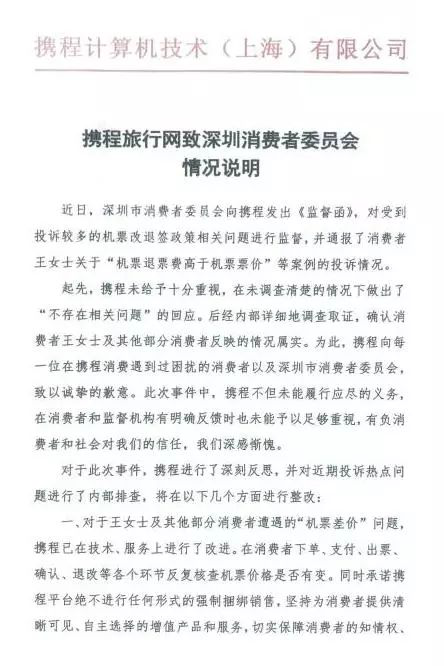 第一,?攜程公司從起初否認(rèn)存在相關(guān)問題,到今天的公開道歉并提出實(shí)質(zhì)性整改措施,從推責(zé)諉過到直面解決,深圳消委會對攜程公司前后態(tài)度和做法的轉(zhuǎn)變給予肯定。