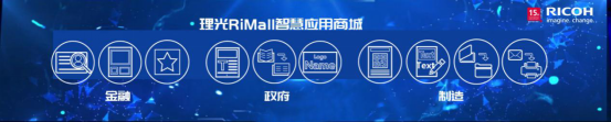 理光(中國)董事長金子豐,經(jīng)營管理部兼市場部總經(jīng)理宮尾康士,市場部副總經(jīng)理曹昀婷、與眾多行業(yè)媒體及嘉賓一道親臨現(xiàn)場,共同見證了RiMall智慧應用商城發(fā)布的重要時刻。