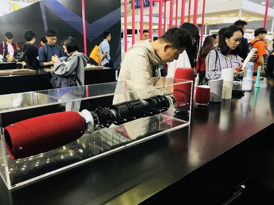 現(xiàn)場(chǎng)展出的小雅AI音箱是國(guó)內(nèi)首款全內(nèi)容智能音箱,是洛可可為喜馬拉雅所設(shè)計(jì)。設(shè)計(jì)過(guò)程中的眾創(chuàng)環(huán)節(jié)覆蓋了37.5萬(wàn)用戶,2.5萬(wàn)用戶直接參與。洛可可助力喜馬拉雅將內(nèi)容載體從APP“搬到了”產(chǎn)品中,拉開(kāi)了國(guó)內(nèi)音箱創(chuàng)新變革的帷幕。而現(xiàn)場(chǎng)展出的曉雅mini AI音箱則是迭新之作,產(chǎn)品的底部使用穩(wěn)定的三腳支撐設(shè)計(jì),減小與桌面的接觸面積,有效避免共振現(xiàn)象引起的音質(zhì)受損。