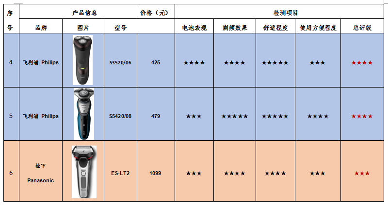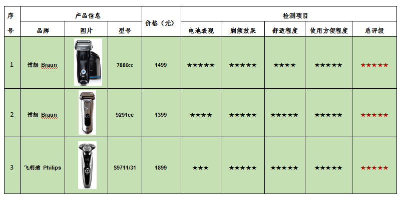附:ICRT電動剃須刀比較試驗產(chǎn)品信息及綜合評級表