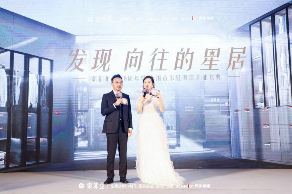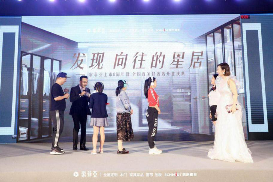 汪涵與索菲亞公司領(lǐng)導同臺慶祝索菲亞上市8周年及全國首家輕奢店開業(yè)儀式,將現(xiàn)場氣氛再次推向高潮。