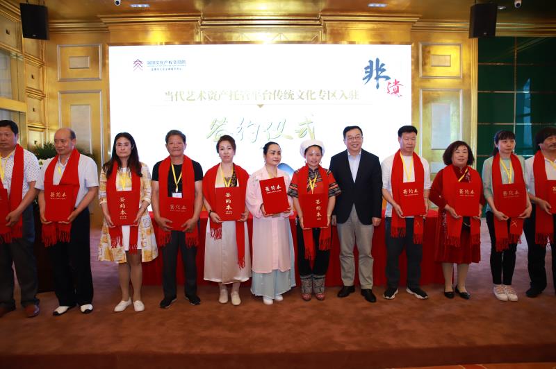 本次活動上,首批入駐當代藝術資產(chǎn)托管平臺傳統(tǒng)文化專區(qū)的20位國家級、省級非物質(zhì)文化遺產(chǎn)傳承人簽約入駐,深圳文交所將為簽約入駐的非遺傳承人提供專業(yè)化服務。