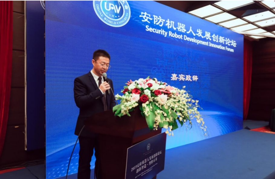 隨后由公安部裝財(cái)局原副局長(zhǎng)、公安部警用航空管理辦公室原主任陶軍生發(fā)表大會(huì)致辭。在致辭中,陶軍生根據(jù)現(xiàn)今5G時(shí)代的快速發(fā)展結(jié)合安防機(jī)器人的應(yīng)用范圍和發(fā)展趨勢(shì)進(jìn)行大體闡述分析,并表明未來(lái)安防機(jī)器人市場(chǎng)前景非常壯大。