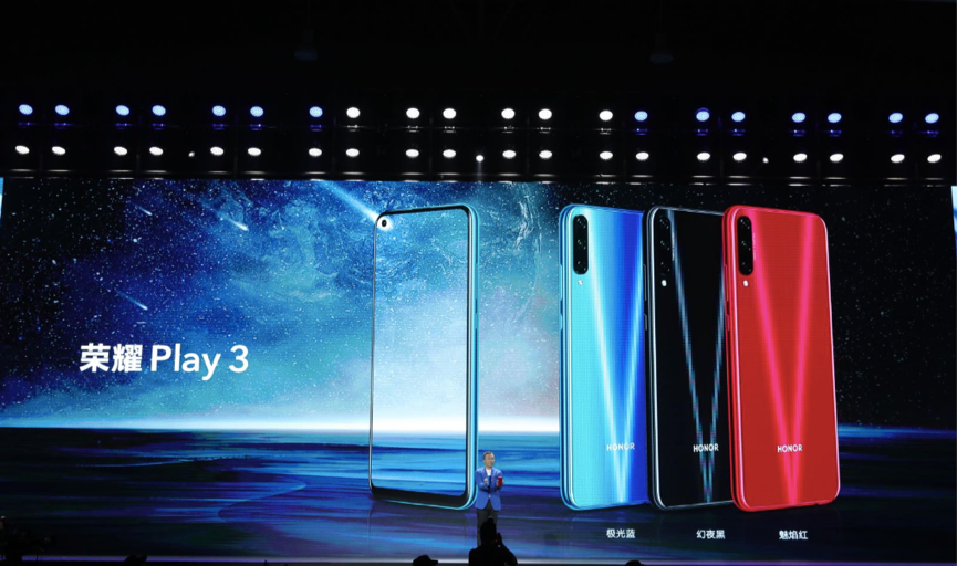 此次發(fā)布會還帶來了全新升級的榮耀Play系列的首款新品榮耀Play3。榮耀Play3擁有三個千元內“首款嚇人配置”,包括“首款配備4800萬像素硬件直出三攝”、“首款搭載旗艦級魅眼全視屏潮設計”以及2.0“全場景加速引擎”,更有方舟編譯器、EROFS超級文件系統(tǒng)、GPU Turbo、LINK Turbo、AI智慧通信等旗艦級自研技術全面加持,將銳科技進行到底,助力榮耀Play3成為檔位王者。榮耀Play3將在9月10日開啟預售,并于9月17日在VMALL商城、京東、天貓、蘇寧易購、唯品會、國美、榮耀親選七大線上平臺及線下同步開售,幻夜黑、魅焰紅、極光藍三種配色最低999元起。