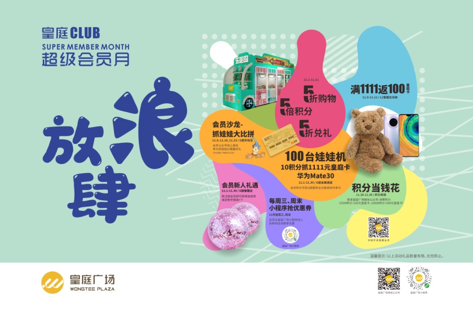 截止2019年10月底,深圳皇庭廣場共有注冊會員超25萬人。面對如此龐大的會員基數(shù),在強化會員粘性和刺激消費者消費兩個層面上,投入了精準的定位與解決方案。此前,在2018年11月由深圳皇庭廣場匠心打造專屬會員的“超級會員月”中取得了不凡業(yè)績,今年以“放肆浪”為主題的超級會員月也將在11月全面展開。