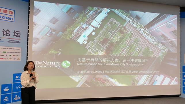 大自然保護(hù)協(xié)會(huì)深圳項(xiàng)目官員張薰予在高峰論壇現(xiàn)場分享海綿城市項(xiàng)目