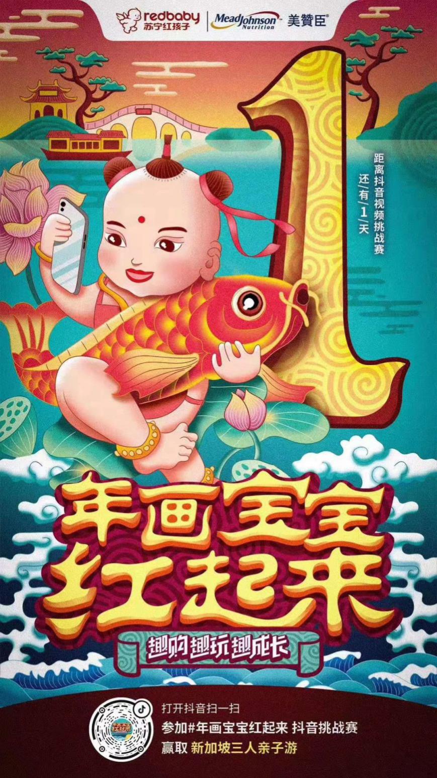 上周,蘇寧紅孩子官方發(fā)起了一場“年畫寶寶紅起來”的抖音挑戰(zhàn)賽活動(dòng)。12月10日-12月31日,在抖音搜索話題,使用蘇寧紅孩子專屬貼紙,讓萌娃變身年畫寶寶,發(fā)布曬娃視頻,就能參與。參與活動(dòng)就有機(jī)會(huì)贏取全家新加坡親子游大獎(jiǎng),寶萌照更有機(jī)會(huì)登上戶外大屏,紅動(dòng)全城。