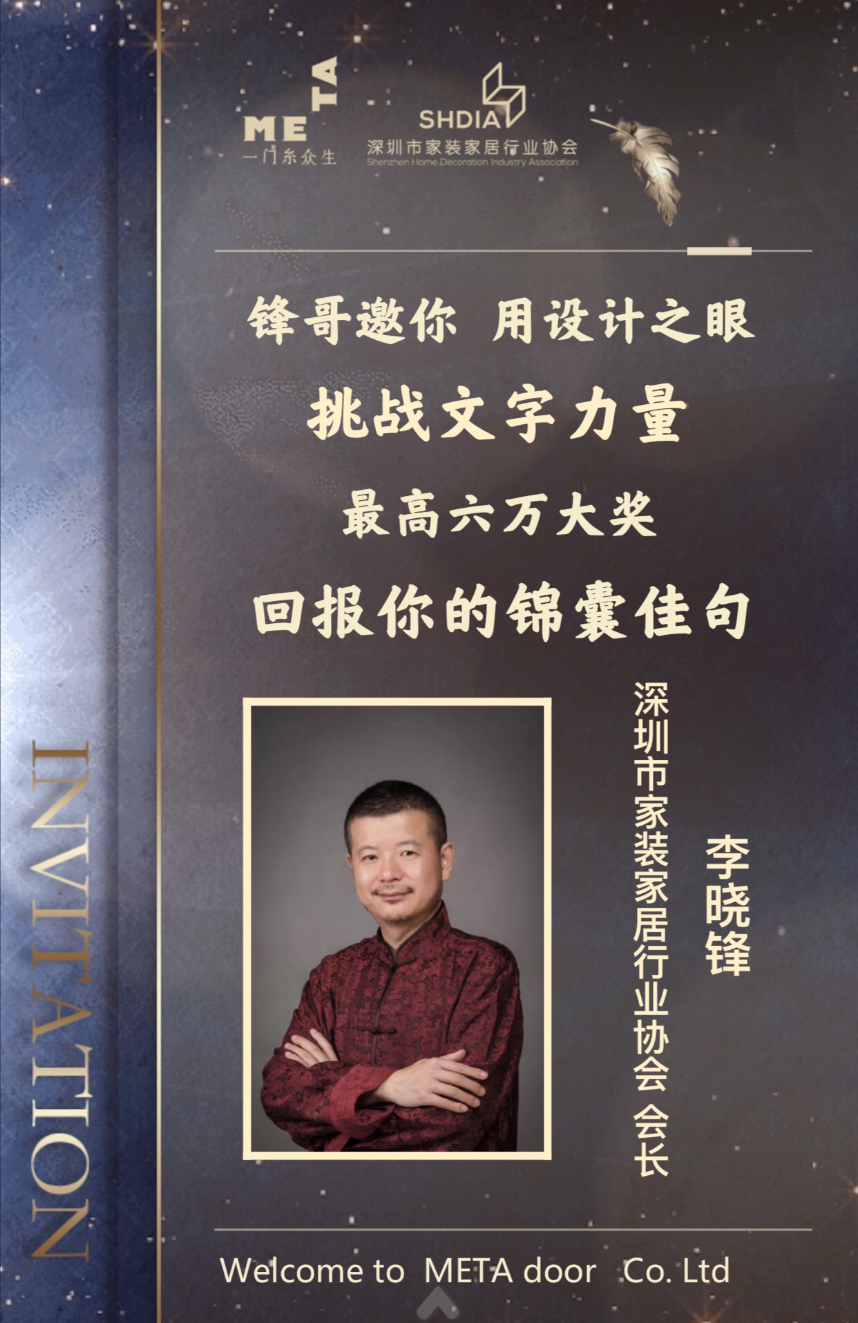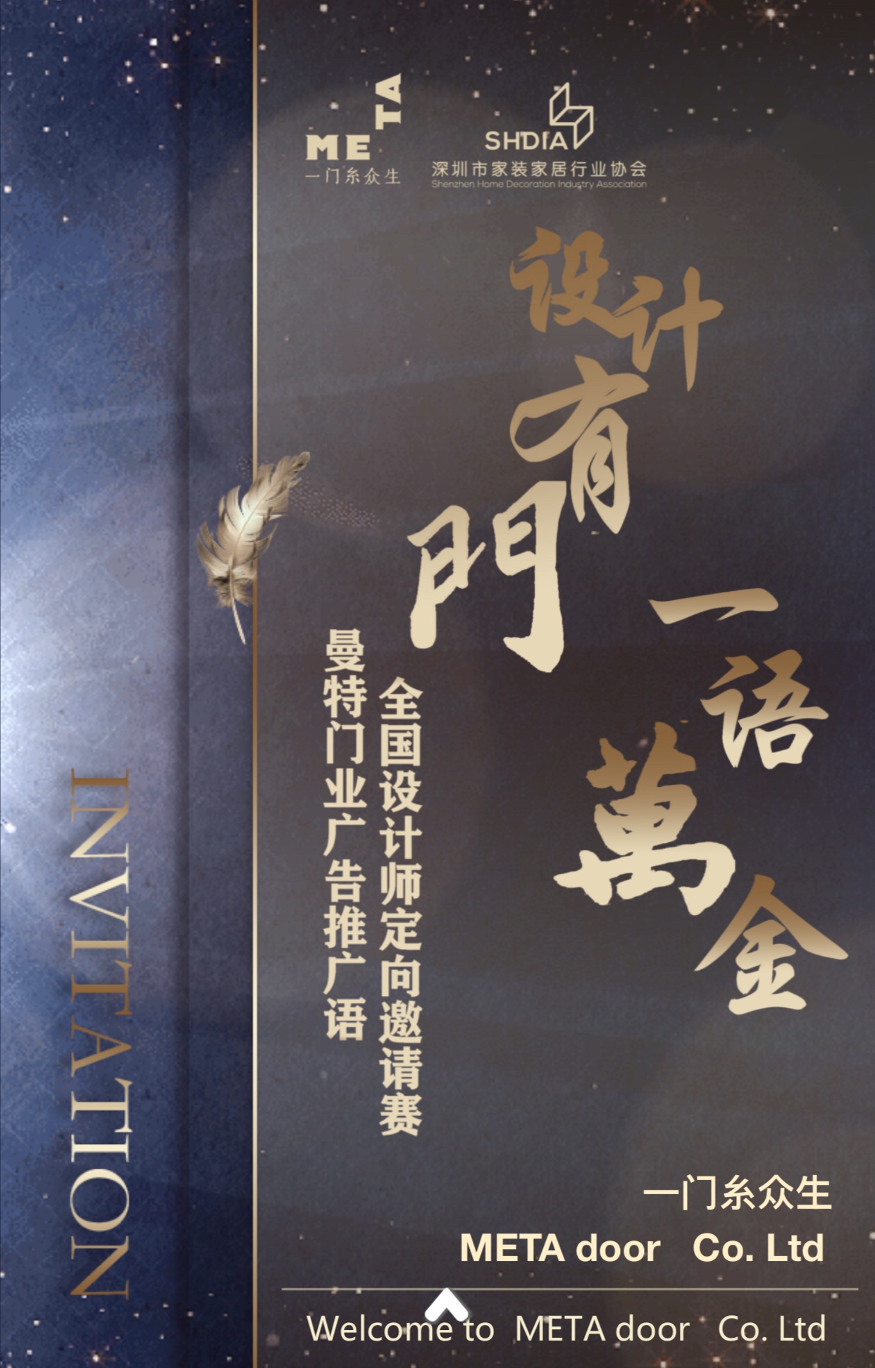 “設(shè)計(jì)有門(mén),一語(yǔ)萬(wàn)金”深圳市家裝家居行業(yè)協(xié)會(huì)、深圳商報(bào)、FM106.2《快樂(lè)家居》工作室聯(lián)手曼特門(mén)業(yè)舉辦的曼特門(mén)業(yè)廣告推廣語(yǔ)全國(guó)設(shè)計(jì)師定向邀請(qǐng)賽,在2020年1月1日正式啟動(dòng)啦。