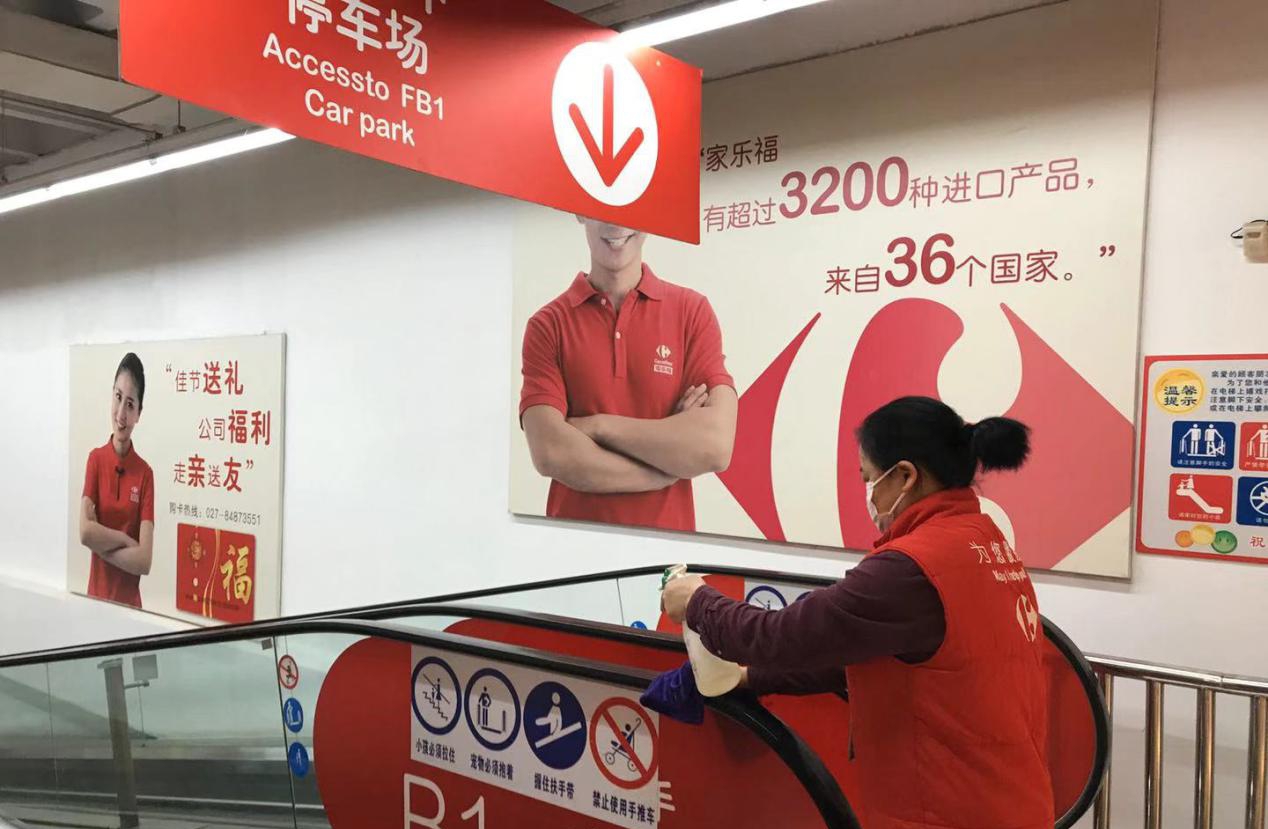 為確保健康、安心的購(gòu)物環(huán)境,家樂福加強(qiáng)各項(xiàng)安全防范措施,員工每日測(cè)體溫戴口罩上崗,地面、自動(dòng)扶梯把手、購(gòu)物車、購(gòu)物籃每2小時(shí)消毒一次,廁所每1小時(shí)消毒一次。以武漢為例,春節(jié)期間門店清潔消毒已消耗1000瓶消毒液、700瓶洗手液,員工嚴(yán)格遵守口罩更換程序,共消耗近20000個(gè)口罩。