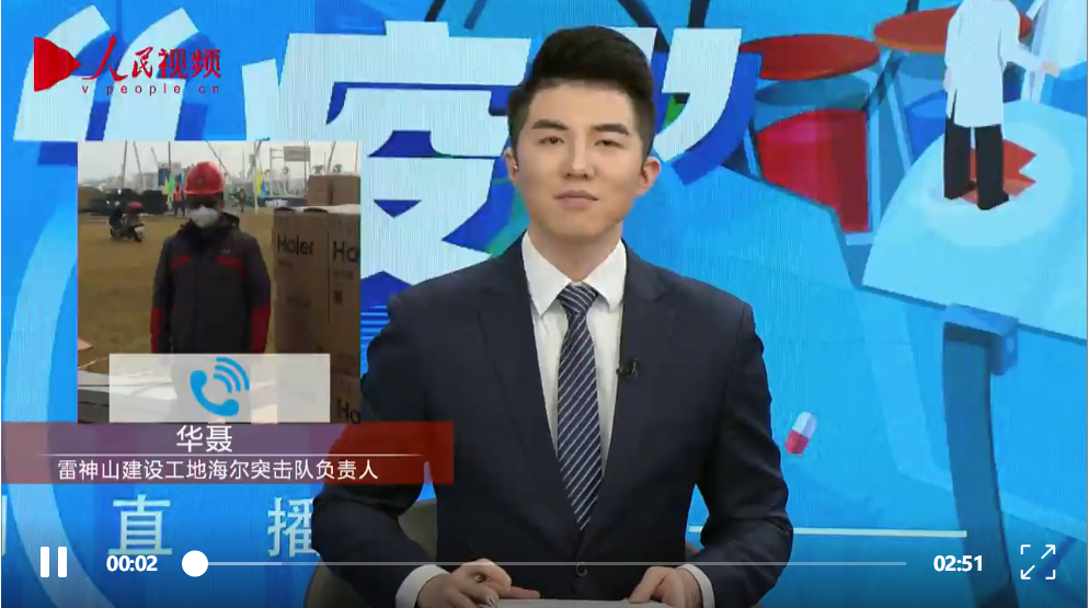 在連線中,海爾突擊隊(duì)現(xiàn)場(chǎng)負(fù)責(zé)人華聶說(shuō),疫情發(fā)生以后,聽(tīng)到雷神山醫(yī)院要成立海爾突擊隊(duì),很多人都自愿放棄休假,紛紛報(bào)名,他們有來(lái)自各地的春節(jié)期間值班人員,也有家住本地的服務(wù)人員。大家第一時(shí)間來(lái)到雷神山醫(yī)院建設(shè)現(xiàn)場(chǎng),支援醫(yī)院建設(shè)。