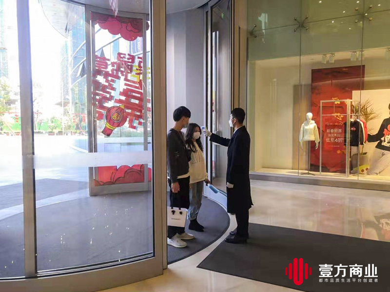 環(huán)境之外,壹方商業(yè)還配合政府加強(qiáng)疫情預(yù)防工作,及時發(fā)現(xiàn)可能的感染者,避免病毒的進(jìn)一步傳播。在營項(xiàng)目均要求顧客戴口罩進(jìn)入,并設(shè)立多個體溫監(jiān)測點(diǎn),安排專人對進(jìn)場顧客進(jìn)行無縫全覆蓋的體溫監(jiān)測,確保為人民群眾營造有序、健康、衛(wèi)生的環(huán)境,有力保障了社會民生穩(wěn)定。