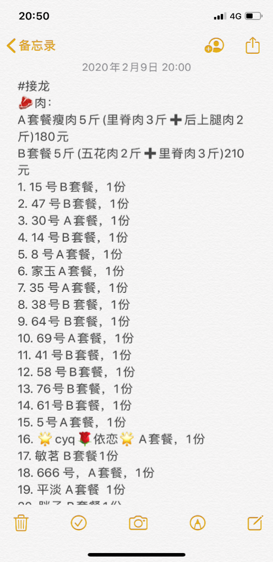 “為了讓買肉的過程更加有效,我們聯(lián)系供應(yīng)商,將肉分為套餐,比如3斤里脊肉和2斤五花肉是A套餐,3斤里脊肉和2斤后腿肉就是B套餐”,胡玉玲說到。套餐一分,供應(yīng)商也好根據(jù)套餐將肉分成份,方便居民購買。每次拿到貨的胡玉玲,都會選幾袋肉出來,用秤核實一下,以免社區(qū)的居民買到少了秤頭的肉,產(chǎn)生不必要的麻煩。她也會在大家拿到肉之后做調(diào)研,在群里詢問大家對每天買到的肉是否滿意,“從開始送肉到現(xiàn)在十多天了,還沒有收到過差評”,胡玉玲開心地說。
