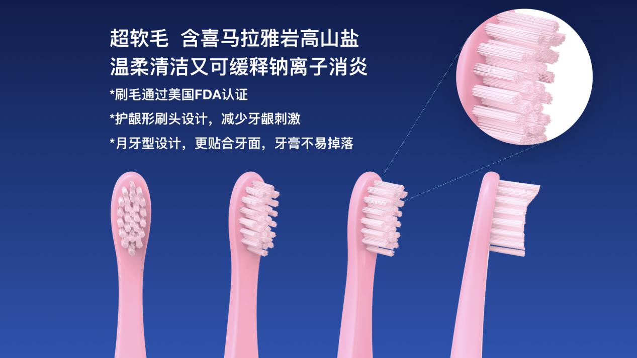 佳潔士S7000K的Q彈全包膠小刷頭,可提升刷牙安全與舒適度,安全不打牙,保護(hù)孩子細(xì)嫩的牙齒牙齦。超軟毛刷毛通過美國FDA認(rèn)證,含喜馬拉雅巖鹽健齒成分,護(hù)齦型刷頭設(shè)計,減少牙齦刺激,月牙型設(shè)計,更貼合牙面,清潔更到位、更安全、更舒適。