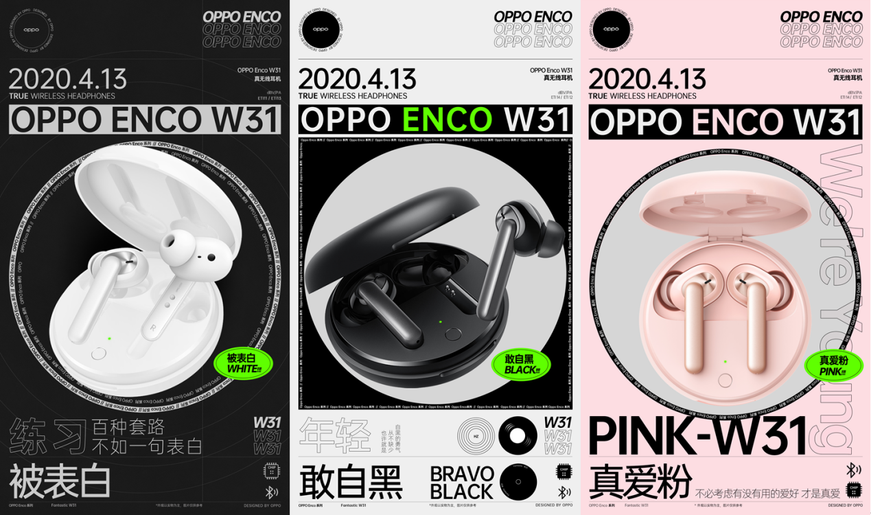 OPPO Enco W31真無線耳機將極簡設(shè)計美學與前沿科技完美糅合,化身潮流好物。遵循簡約小巧的設(shè)計理念,外殼圓潤輕巧,方便用戶隨身攜帶。擁有敢自黑、被表白、真愛粉三種配色可供選擇,滿足年輕人不同個性的表達。