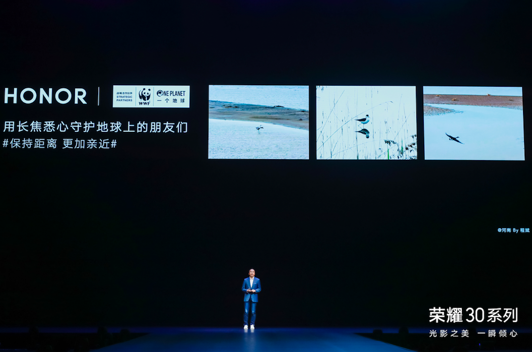 見圳客戶端 ·深圳新聞網(wǎng)2020年4月15日訊 今天,在榮耀30系列新品發(fā)布會暨2020榮耀春夏秀現(xiàn)場,榮耀宣布與世界自然基金會(WWF),一個(gè)地球自然基金會(OPF)建立戰(zhàn)略伙伴關(guān)系,秉持“保持距離更加親近”的理念,共同倡議與自然和諧共生、守護(hù)野生動植物的自然棲息,用影像表達(dá)喜愛,用長焦紀(jì)錄地球生物多樣性。
