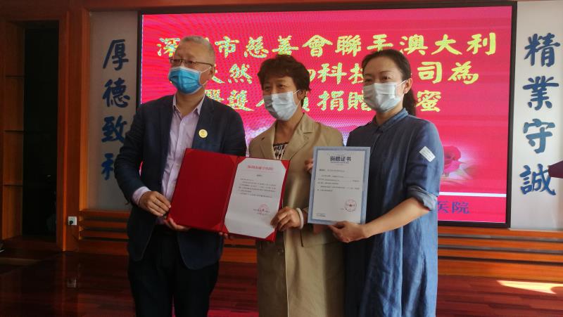 深圳市康寧醫(yī)院黨委書(shū)記王建紅,深圳市慈善會(huì)副秘書(shū)長(zhǎng)董昕,澳大利亞天然生物科技公司駐中國(guó)辦事處代表全波,深圳市康寧醫(yī)院黨委委員、黨辦主任工會(huì)副主席陳靜,深圳市康寧醫(yī)院工會(huì)女工委主任劉雪琴,深圳市慈善會(huì)社會(huì)幫扶部部長(zhǎng)肖志輝等參加捐贈(zèng)儀式。