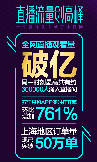 為支持上海五五購物節(jié),蘇寧在20億消費券的基礎(chǔ)上,將為上海消費者推出“超級百億補貼”,還將通過額外發(fā)放“爆品專屬補貼”“分期免息補貼”“以舊換新補貼”等讓利補貼,力促上海消費回暖。直播當晚,共計發(fā)出5億消費券。