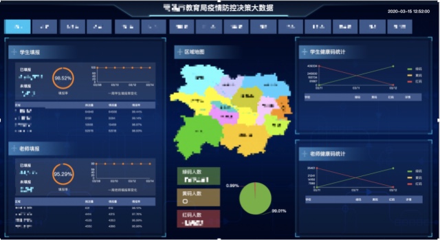 同時,企業(yè)微信的管理后臺具有多維數(shù)據(jù)展示、導(dǎo)出和防控數(shù)據(jù)動態(tài)可視化展示的功能,可實(shí)時監(jiān)測防控數(shù)據(jù),將數(shù)據(jù)進(jìn)行分類匯總,管理者只需一鍵導(dǎo)出統(tǒng)計報表,就能全面掌握區(qū)域師生健康狀況,確認(rèn)返校師生員工名單,全面統(tǒng)籌安排后續(xù)教學(xué)工作。