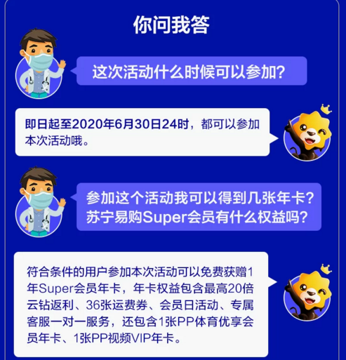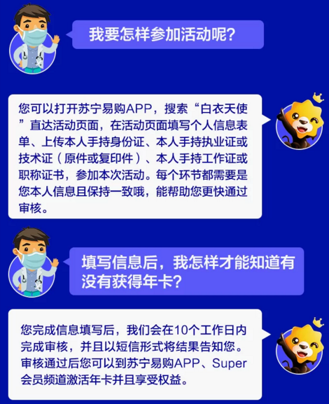 為表達(dá)對(duì)醫(yī)護(hù)工作者的敬意,蘇寧對(duì)全國(guó)醫(yī)護(hù)人員開放SUPER會(huì)員免費(fèi)申領(lǐng)活動(dòng)。