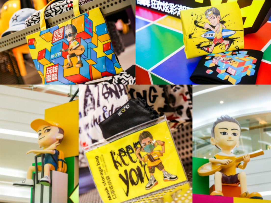 KK ONE原創(chuàng)IP ONE仔也進行了全新亮相,從去年C位出道的練習生進階為今天活力全開的潮流玩咖,ONE仔和所有追求個性和卓越的朋友一起成長,一起見證了2019年的街潮活動:拉闊籃球賽、不插電音樂賽、摩登實驗室、鐘漢良見面會等活動的精彩,一起體驗創(chuàng)新放肆玩法和玩潮“魔”力。ONE仔和熱愛生活的潮咖們一樣,喜歡運動,愛音樂,愛旅行。目前,ONE仔衍生的定制周邊皆陳列于本次炫彩“魔”方展中,并作為定制禮包贈送給粉絲和顧客。據(jù)悉,未來KK ONE會挖掘更多的IP玩法,鮮活ONE仔形象,為潮咖們提供更多的玩潮互動場。