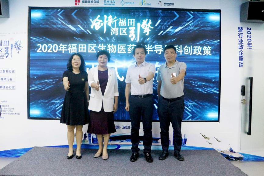 時春蕾書記、張忠暉局長、周斌會長、王艷梅所長聯(lián)合啟動“創(chuàng)新福田,灣區(qū)引擎”2020年福田區(qū)生物醫(yī)藥&半導(dǎo)體科創(chuàng)政策正式發(fā)布儀式。