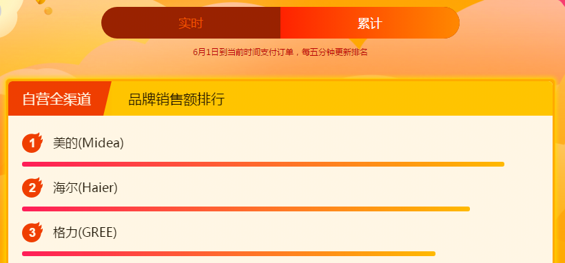 與此同時,頭部品牌在蘇寧全渠道銷售暴增。截至當日16時,美的、海爾、格力占據品牌銷售額前三席位。其中,美的以品牌銷量、品牌銷售額、品牌加購人數(shù)三冠的成績領跑榜單,同時橫跨空調、冰洗、品質廚電等多品類品牌TOP榜,成為最大贏家。