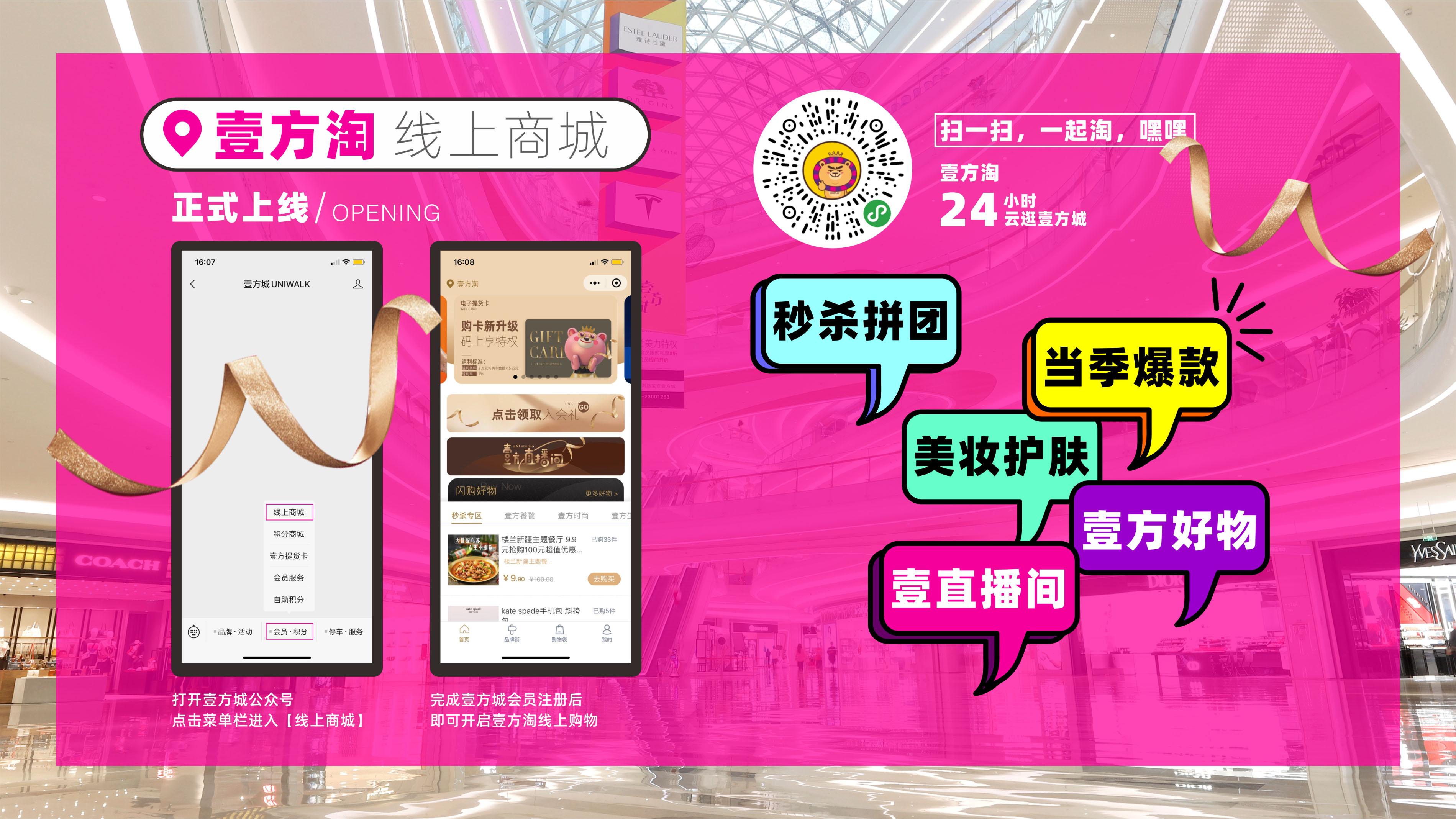 布局線上商城的同時,壹方也通過更多方式進(jìn)行創(chuàng)新營銷,充分發(fā)揮商業(yè)排頭兵“創(chuàng)新變革”的魄力,滿足顧客購物需求的基礎(chǔ)上,線上線下多渠道整合聯(lián)動,不斷為消費者帶來全新生活場景體驗。