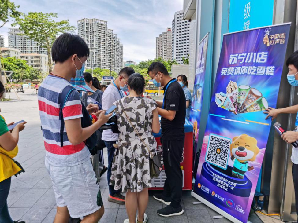 無獨有偶,群星廣場蘇寧易購門店外的活動賽場亦同步在火熱舉行中,7月18日-7月19日,蘇寧聯(lián)合美的一同舉辦中國好聲音復賽,活動現(xiàn)場熱鬧非凡,做好防疫檢查工作的同時,全力維護現(xiàn)場治安秩序穩(wěn)定,活動現(xiàn)場蘇寧小店展開夏日送清涼活動,免費送冰水雪糕,用“清涼一夏”的愛心之舉,給市民帶去一份夏日關(guān)懷。同時現(xiàn)場參賽選手三十余位埋藏著夢想的音樂人在舞臺上縱情燃燒,深情獻唱,將活動推向了高潮。一同成就粵港蘇寧十九周年最炫的夜晚。