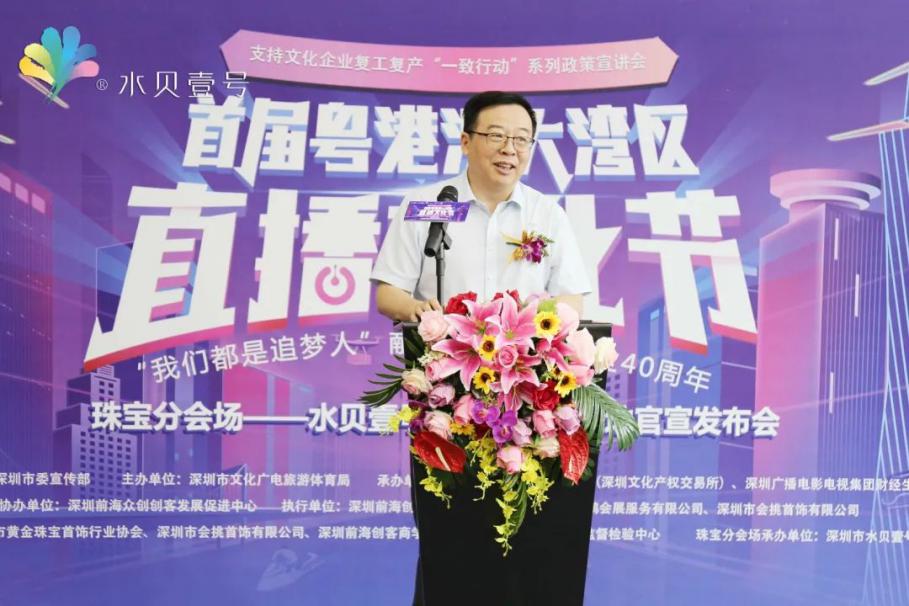 見圳客戶端·深圳新聞網(wǎng)2020年7月21日訊 昨日,支持文化企業(yè)復(fù)工復(fù)產(chǎn)“一致行動(dòng)”系列政策宣講會(huì)暨粵港澳大灣區(qū)直播文化節(jié)珠寶分會(huì)場“水貝壹號品牌珠寶集聚地”官宣發(fā)布會(huì)在水貝壹號舉行,標(biāo)志著首屆粵港澳大灣區(qū)直播文化節(jié)珠寶分會(huì)場“水貝壹號品牌珠寶集聚地”活動(dòng)正式啟動(dòng)。