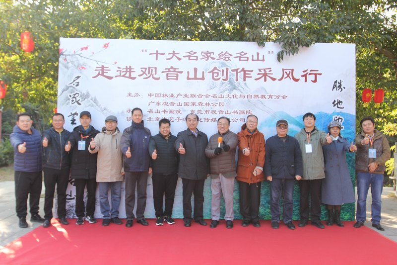 見圳客戶端·深圳新聞網(wǎng)2020年12月28日訊 為弘揚(yáng)名山文化,展現(xiàn)名山風(fēng)采,近日由中國林業(yè)產(chǎn)業(yè)聯(lián)合會(huì)名山文化與自然教育分會(huì)和廣東觀音山國家森林公園共同主辦的“名家繪名山”系列活動(dòng)在東莞樟木頭觀音山景區(qū)啟動(dòng)。作為啟動(dòng)儀式首站,主辦方邀請(qǐng)了李耀林、邵璞、孟慶剛、陳玉林、任賢義、黃棟斌、陸遷波、張延?xùn)|、苗霖、李建鋒10位國內(nèi)畫壇著名美術(shù)家,走進(jìn)東莞觀音山采風(fēng)、寫生、創(chuàng)作。活動(dòng)期間,10位畫家共同創(chuàng)作了“名山十大雄天下”巨幅山水畫,并創(chuàng)作了系列采風(fēng)畫作,成效頗豐。