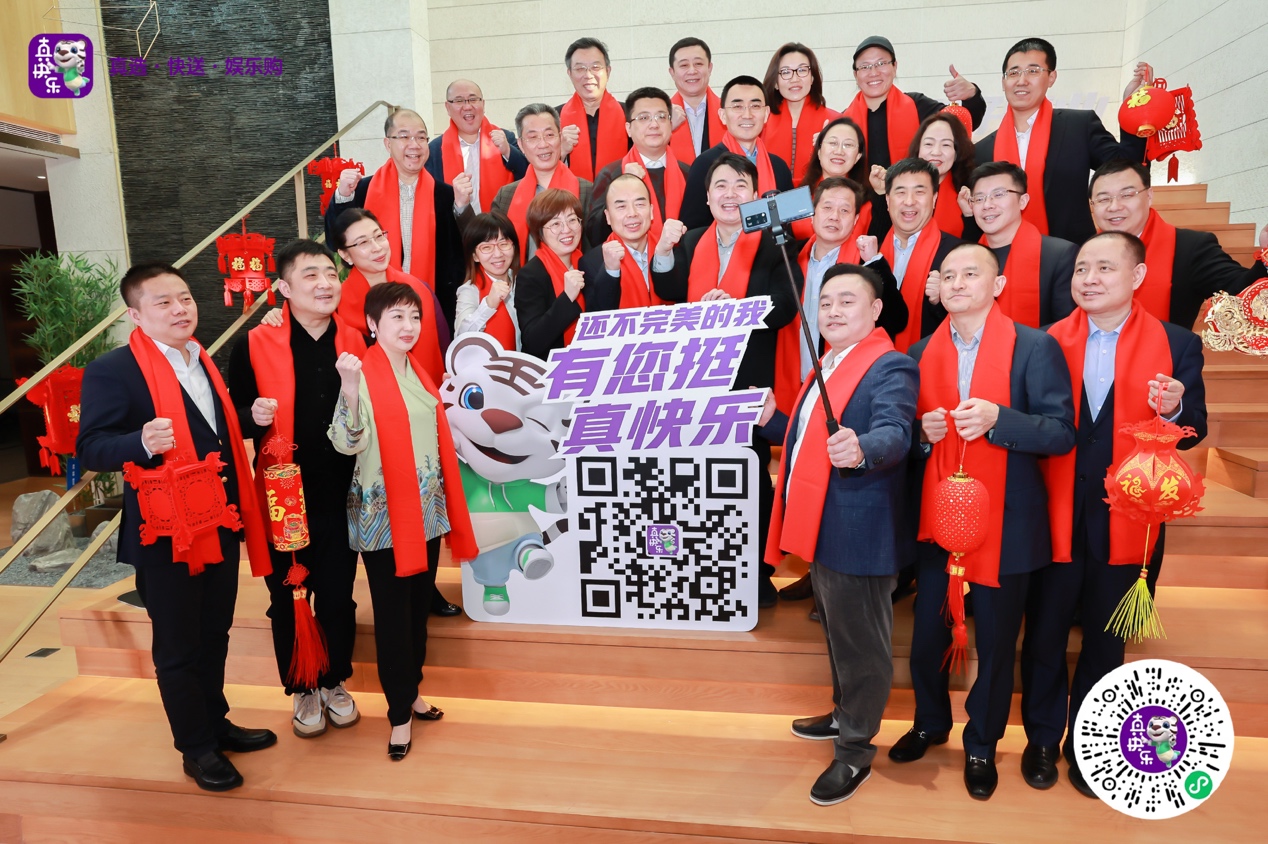 他還表示,“今天元宵節(jié),我特別邀請(qǐng)全國(guó)消費(fèi)者,掃碼‘真快樂’A PP,來‘真快樂’體驗(yàn)!”合影時(shí),黃光裕帶頭玩起了自拍,他牽著“真快樂小虎”,特別提議在這個(gè)快樂的節(jié)日,大家一起為“真快樂”A PP打C ALL。他帶領(lǐng)高管們向全體國(guó)美員工、各界合作伙伴、全國(guó)消費(fèi)者,一起發(fā)出“還不完美的我,有您挺!真快樂!”的熱情邀請(qǐng)和真摯祝福,將元宵國(guó)美全家福快樂定格。