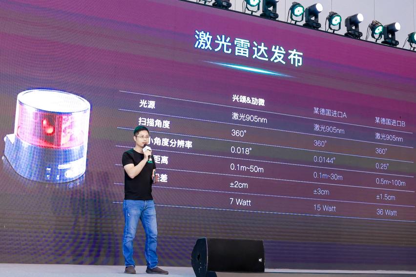 接下來進(jìn)入到發(fā)布會重磅內(nèi)容環(huán)節(jié),首先,勱微機(jī)器人CEO陳文成在會上宣布了勱微聯(lián)合興頌研發(fā)的激光雷達(dá),這款激光雷達(dá)具有優(yōu)異的性能,即使在5%反射率的環(huán)境下,依然可以有50m的檢測距離,同時還具備非常穩(wěn)定的持續(xù)輸出,且精度保持在±2mm,較同行的±10mm更精準(zhǔn)。