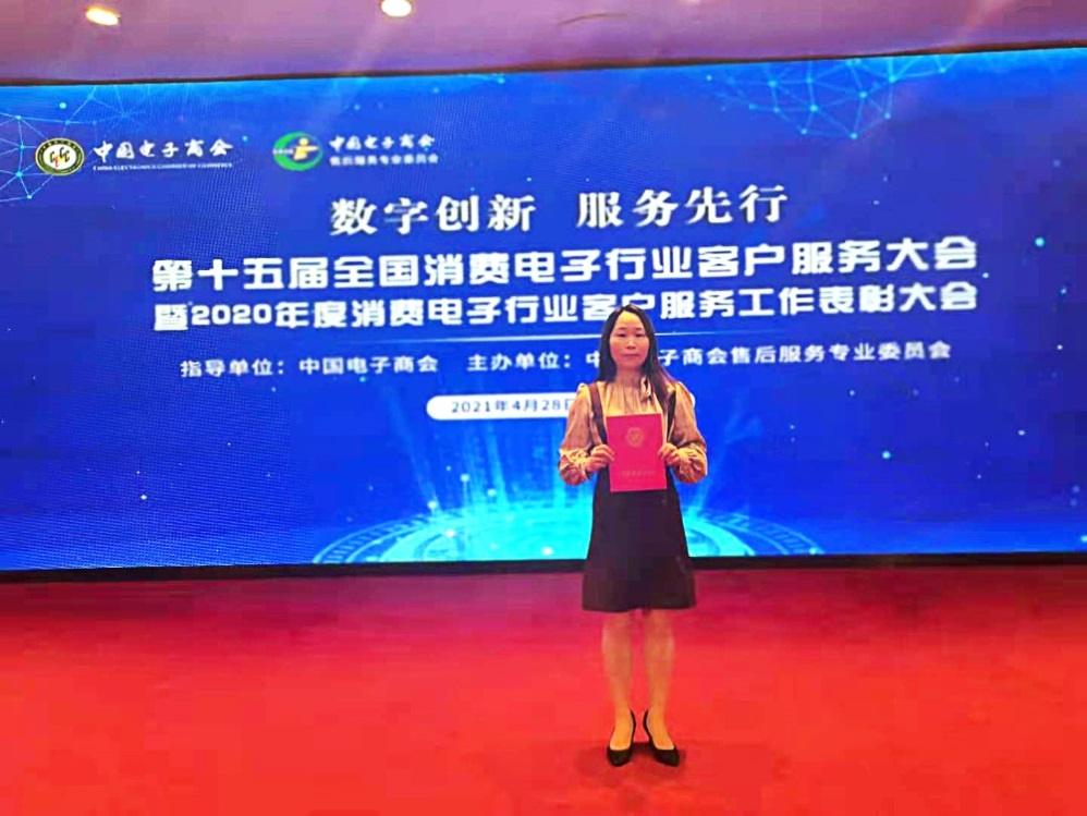 本次大會(huì)上榮獲“2020年度消費(fèi)電子行業(yè)客戶服務(wù)優(yōu)秀工作者”的錢(qián)云是國(guó)美管家全體后服務(wù)工作者的縮影,國(guó)美管家各地的服務(wù)團(tuán)隊(duì)均以專業(yè)、標(biāo)準(zhǔn)、熱情的服務(wù)得到了廣大消費(fèi)者認(rèn)可。