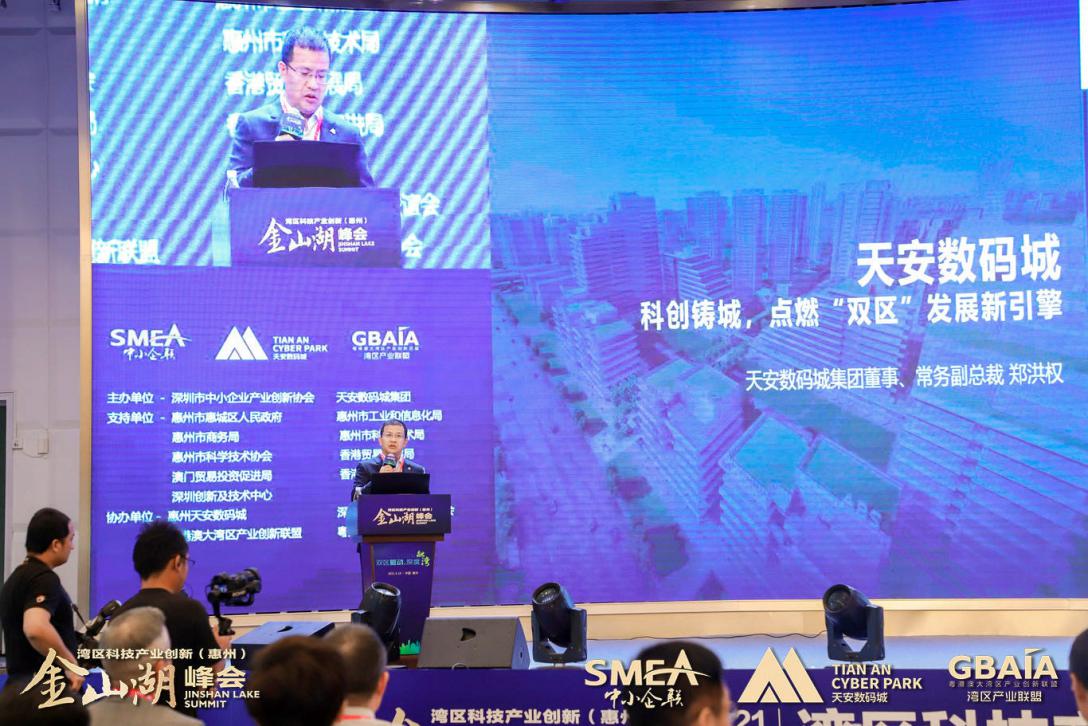 “‘雙區(qū)’建設(shè)是國家領(lǐng)導(dǎo)人和黨中央部署的重大國家戰(zhàn)略,作為粵港澳大灣區(qū)重要節(jié)點(diǎn)和深圳都市圈重要成員,全力支持、積極融入既是惠州鮮明的政治態(tài)度,也是惠州發(fā)展的必然抉擇。相信在惠州市及各級政府部門支持下,深圳市中小企業(yè)產(chǎn)業(yè)創(chuàng)新協(xié)會、天安數(shù)碼城集團(tuán)強(qiáng)強(qiáng)攜手,與各方合作伙伴共同努力,通過每年一屆的“灣區(qū)產(chǎn)業(yè)創(chuàng)新(惠州)金山湖峰會”深入落實(shí)創(chuàng)新驅(qū)動發(fā)展戰(zhàn)略,匯聚粵港澳大灣區(qū)產(chǎn)業(yè)創(chuàng)新資源,深化粵港澳創(chuàng)新合作,助力惠州與灣區(qū)城市間的產(chǎn)業(yè)創(chuàng)新與協(xié)同發(fā)展。