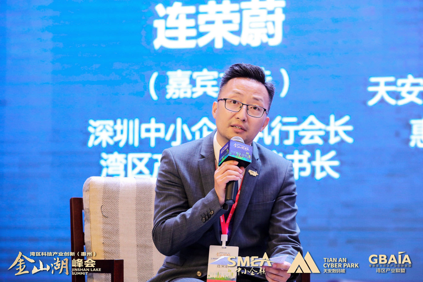 深圳中小企聯(lián)執(zhí)行會長、灣區(qū)產(chǎn)業(yè)聯(lián)盟秘書長連榮蔚主持論壇環(huán)節(jié)