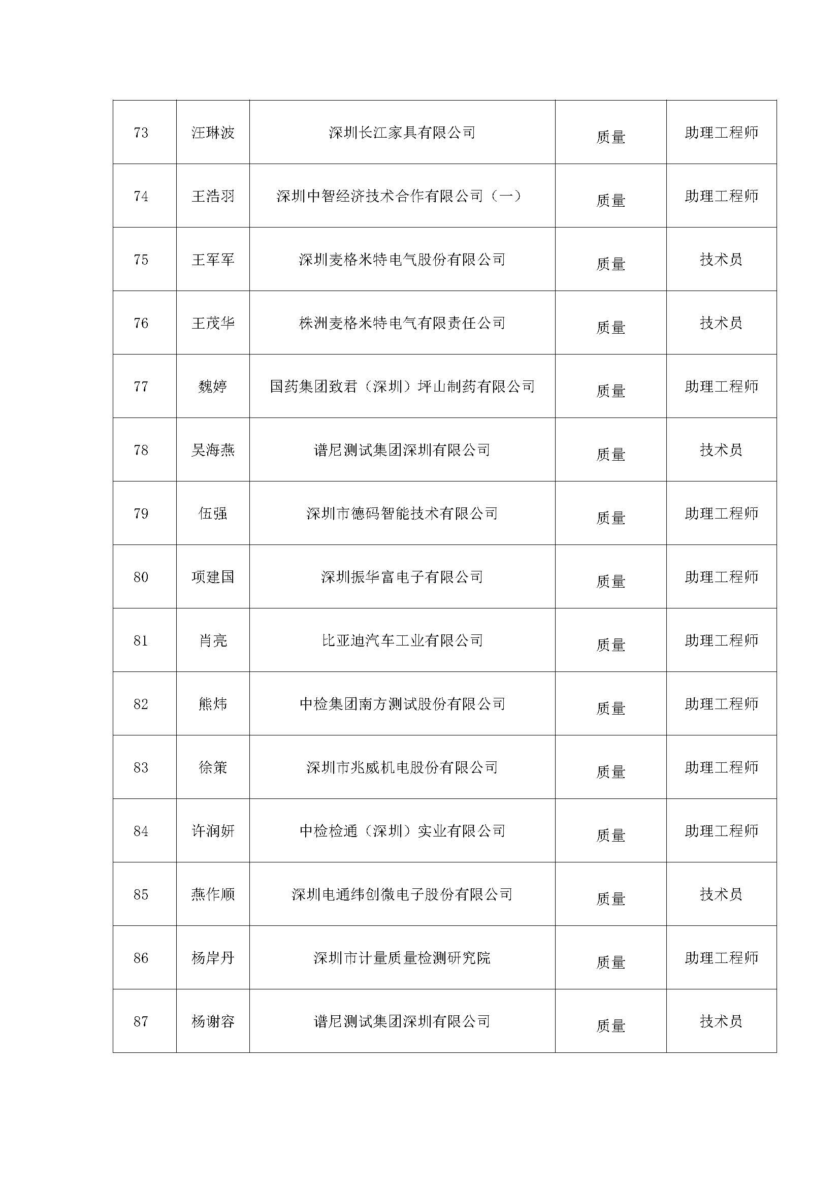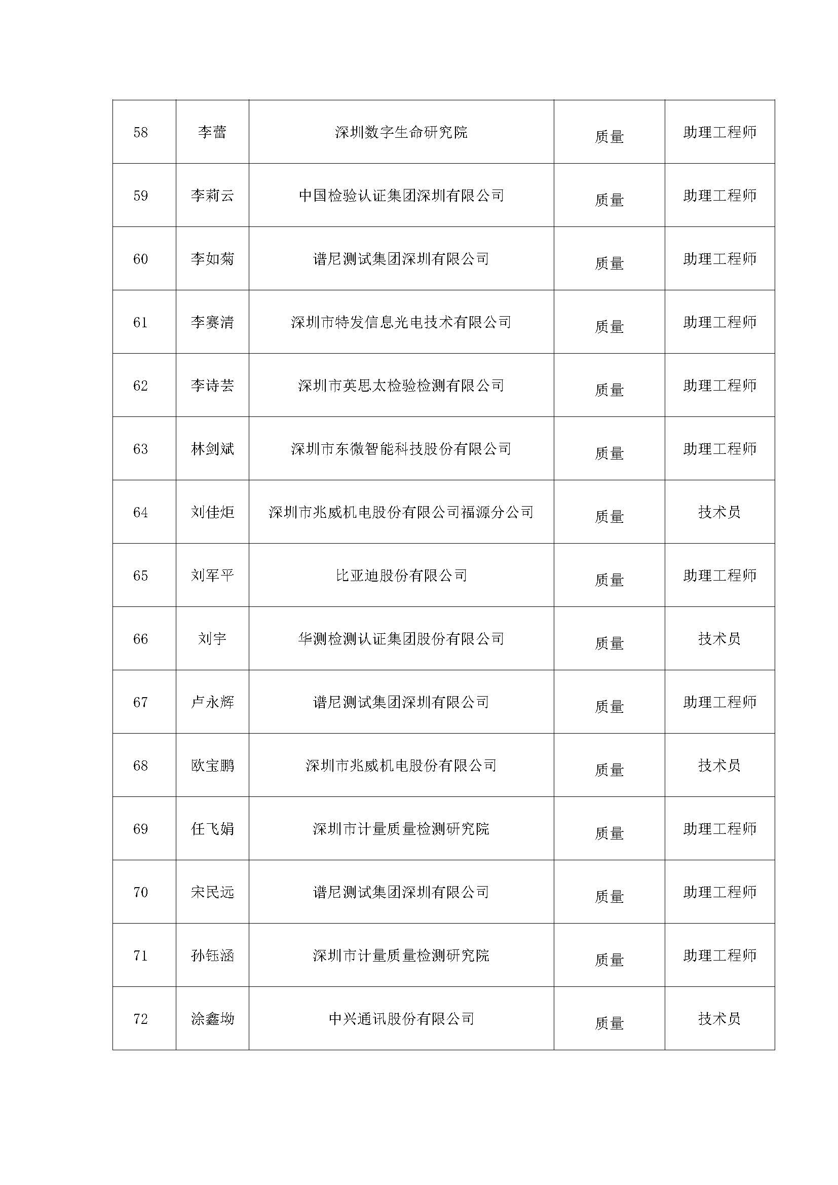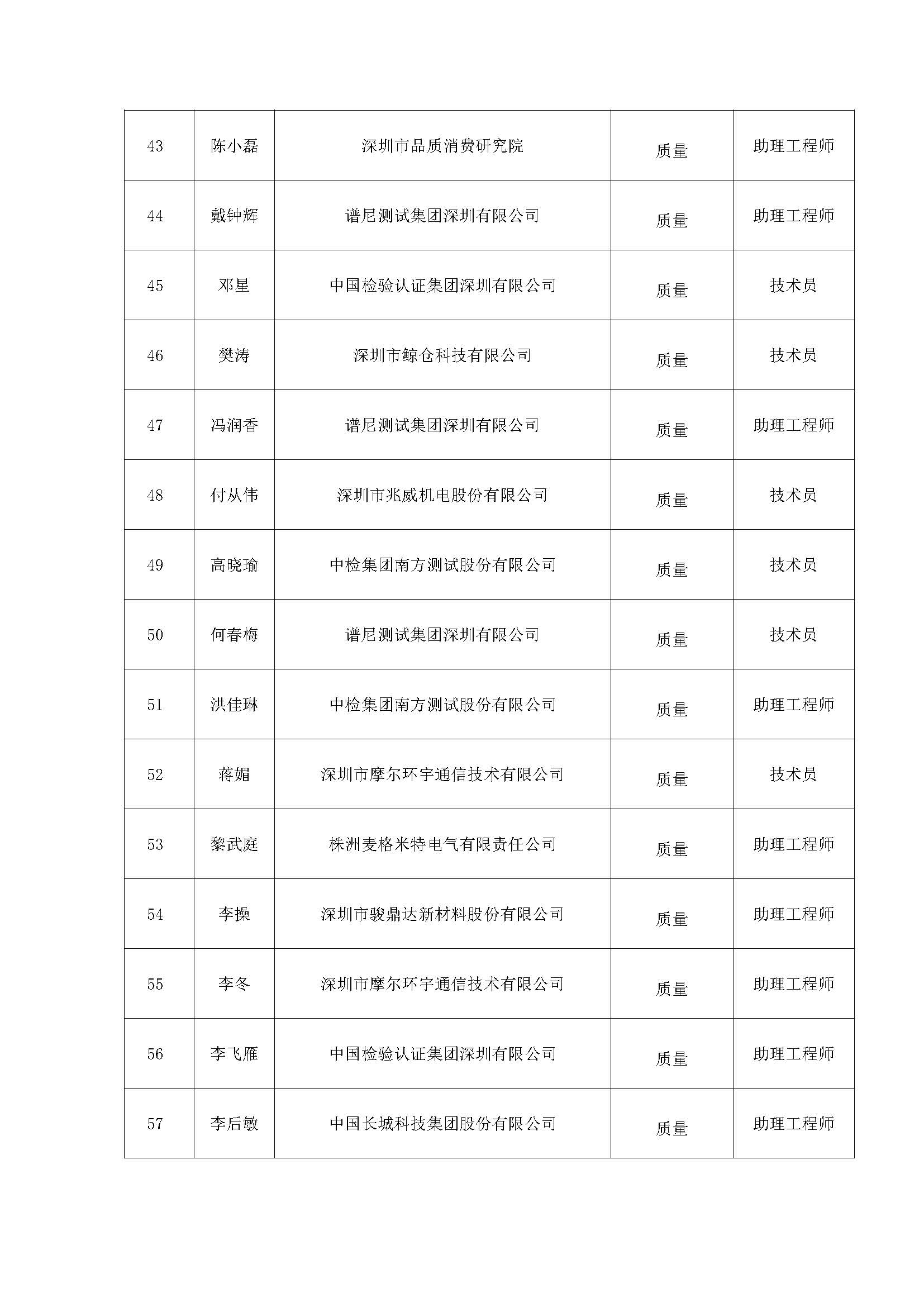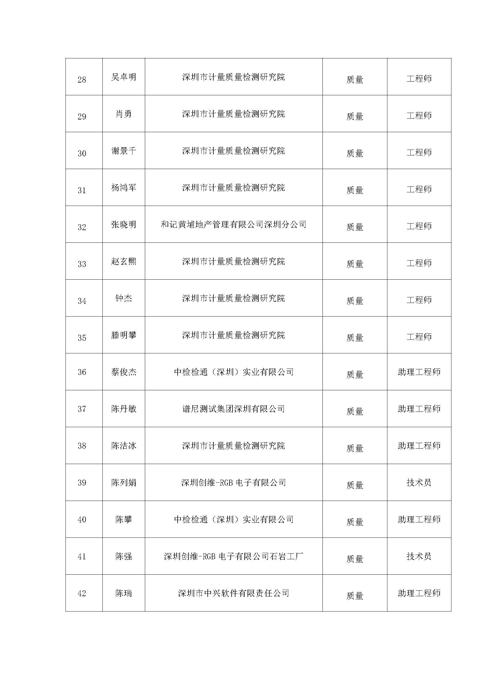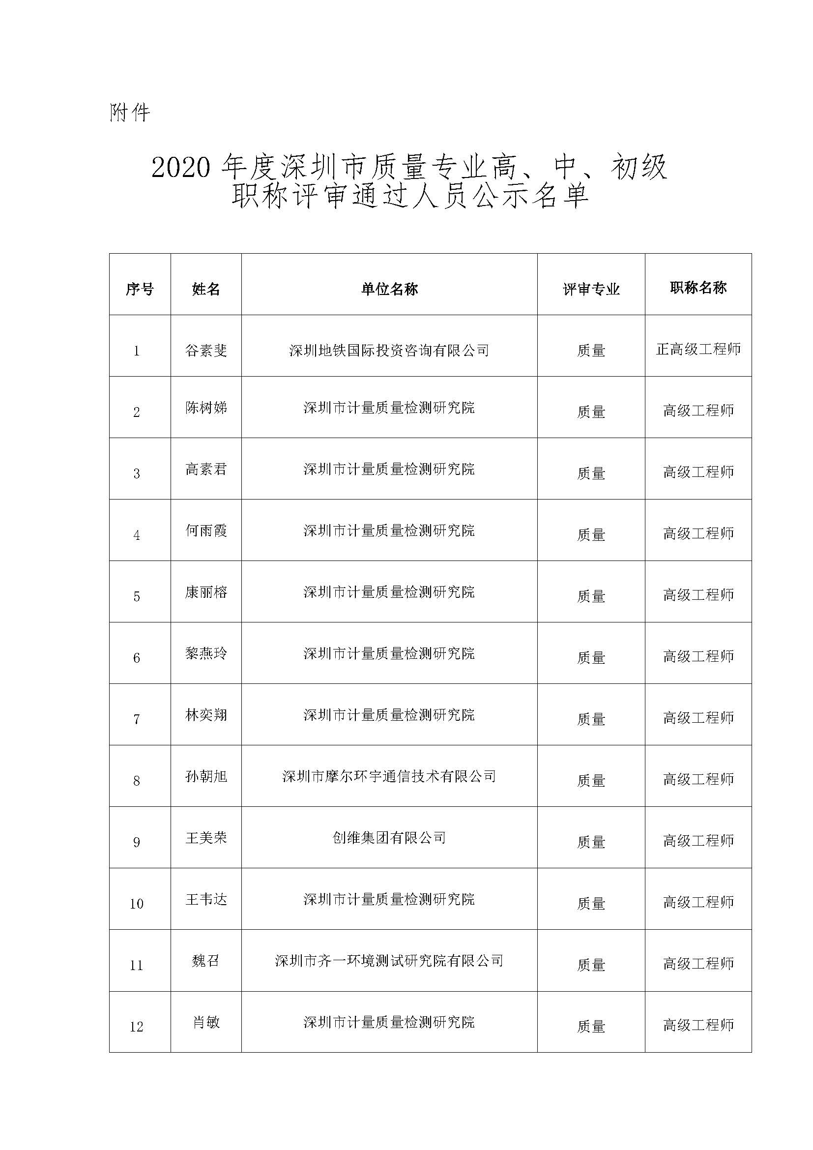 附件:2020年度深圳市質(zhì)量專業(yè)高、中、初級職稱評審?fù)ㄟ^人員公示名單