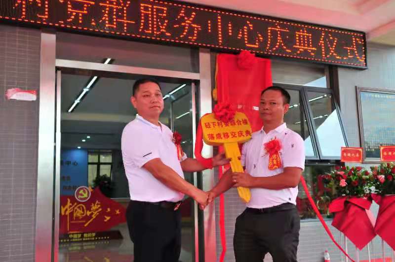 在落成典禮中,深圳安宏基控股集團(tuán)有限公司彭康輝董事將大樓辦公鑰匙移交給硁下村黨支部書(shū)記彭志康。村支書(shū)彭志康、五云鎮(zhèn)慈善會(huì)會(huì)長(zhǎng)彭志響一起贈(zèng)牌匾給深圳安宏基控股集團(tuán)有限公司彭康輝董事。