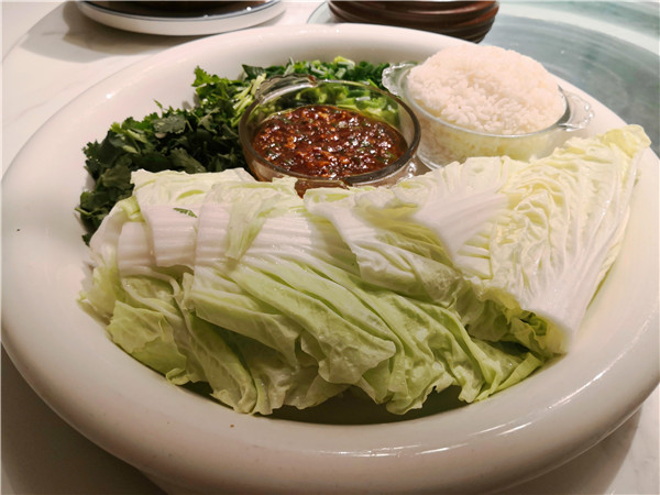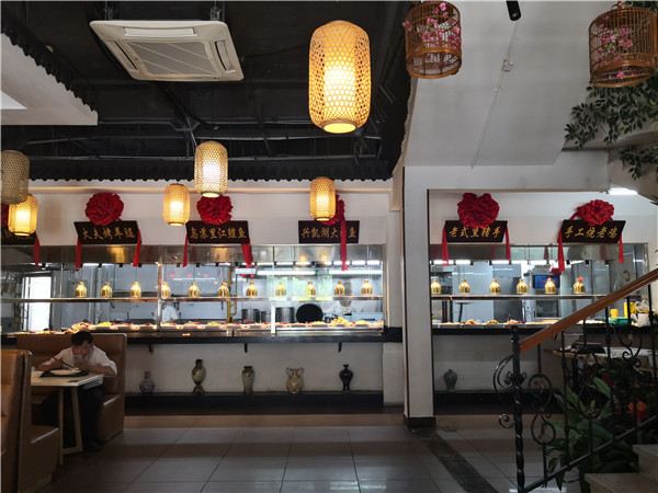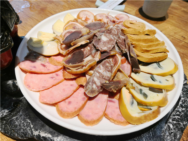 尤其扎眼的,正對大門的明廚亮灶上的幾塊牌匾,一下子就勾起人的食欲:老式熏豬手、手工燒老雞、烏蘇里江鰉魚、興凱湖大白魚、查干湖胖頭魚、火夫灶羊腿。這些都是地道的東北味??!據(jù)介紹,老板湯長明是黑龍江“龍菜”系傳承領(lǐng)軍人物,祖孫四代傳承東北菜廚藝,現(xiàn)在關(guān)東大院餐飲集團董事長。當(dāng)然,許多大家耳熟能詳?shù)拇蟊姴艘矐?yīng)有盡有,如:殺豬菜、小雞燉蘑菇、得莫利燉魚、大鵝燉寬粉、黑皮肘子、酸菜粉、地三鮮、東北鹵水點豆腐、金湯遼參、黃魚燒土豆、紅燒肉黃金勾......看得人口水直冒。加之,整個門店的布局也十分特別,一樓明廚亮灶之外,主要是大堂散座,周邊還有不少的書籍、酒架;二樓主要是包間,簡潔明亮??梢哉f,在此可以感受到一股濃濃的關(guān)東風(fēng)情。