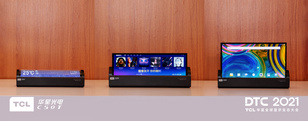 14"噴墨打印OLED卷軸屏,可以自由變換多種形態(tài),數(shù)字顯示鬧鐘、音樂(lè)播放器、顯示器,多種應(yīng)用形態(tài)無(wú)縫切換,完美融入家居場(chǎng)景中,盡顯柔性O(shè)LED顯示的魅力。它的卷曲半徑<R20mm,在高溫高濕條件下,卷曲壽命高達(dá)10萬(wàn)次,再配合自發(fā)光高精度噴墨印刷工藝制備技術(shù),以及內(nèi)置的AI補(bǔ)償算法,可以使它的畫(huà)面色彩更加明艷通透,顯示效果也得到了大幅提升。該產(chǎn)品目前由TCL華星跟日本JOLED合作推出。