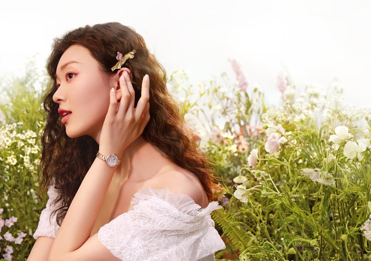 ?本次天天王表聯(lián)名 She’s飾品推出的新品腕表,就很好利用了蝴蝶這一元素,遠(yuǎn)觀貝母表盤下方兩只蝴蝶深情對(duì)望翩然起舞,細(xì)看竟還有滿盤的裸色印壓蝴蝶,著實(shí)精致巧妙,不同于《愛蓮說》中的“可遠(yuǎn)觀而不可褻玩焉,蝴蝶腕表可謂是兼具觀賞和把玩兩大功能,優(yōu)雅時(shí)尚又充滿浪漫色彩。