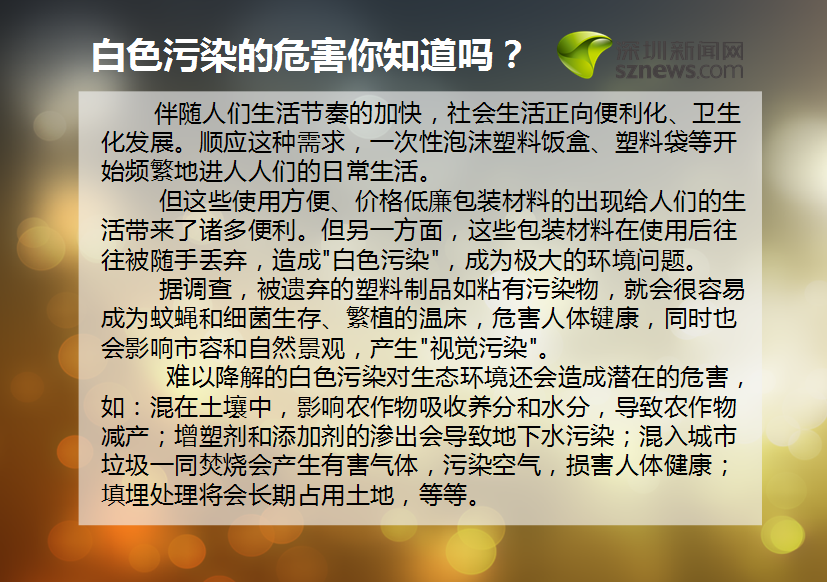 伴隨人們生活節(jié)奏的加快,社會(huì)生活正向便利化、衛(wèi)生化發(fā)展。順應(yīng)這種需求,一次性泡沫塑料飯盒、塑料袋等開(kāi)始頻繁地進(jìn)人人們的日常生活。