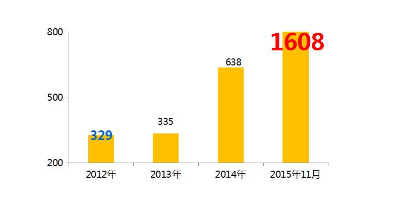 隊伍發(fā)展:2012-2015年,新華深分組織不斷擴大。截至2015年11月,個險人力達(dá)1608人,較2012年增長近5倍。