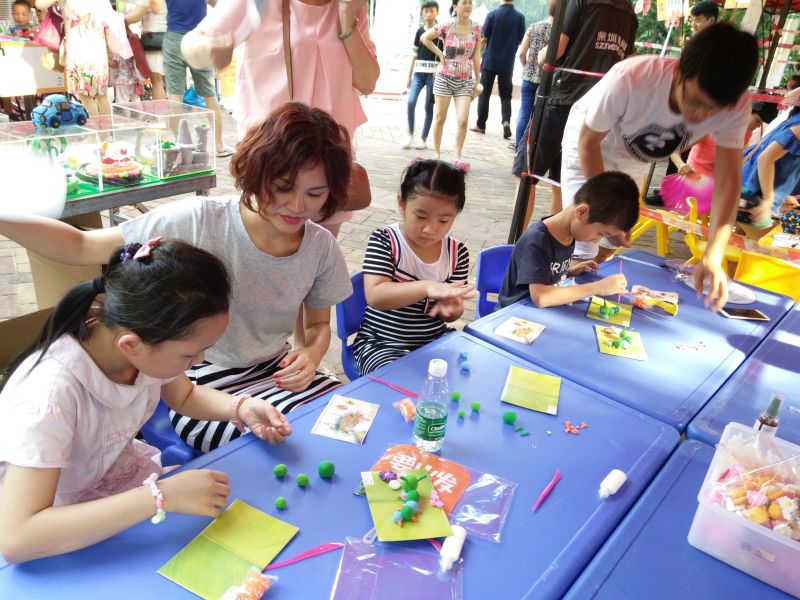 棉花糖、跳房子,讓家長們找回了童年的記憶和樂趣。而動手動腦的扇子彩繪、剪紙、中國結制作、軟陶制作則讓孩子們體驗到手工制作的樂趣。